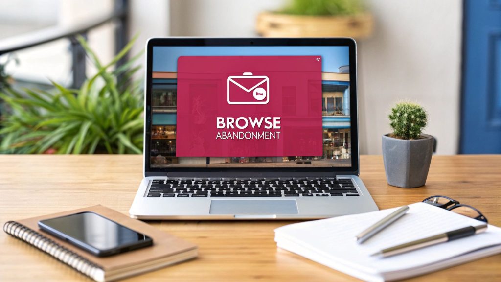 This isn’t just a nice-to-have tactic; it’s a core strategy for capturing sales you would otherwise lose. The data backs this up, showing that browse abandonment emails have a conversion rate of around 0.96%. That might not sound like a lot, but it’s a huge leap from the typical 0.10% conversion rate of general email campaigns. That makes it an incredibly powerful tool for revenue recovery. You can learn more about the power of browse abandonment emails from the experts at Klaviyo.