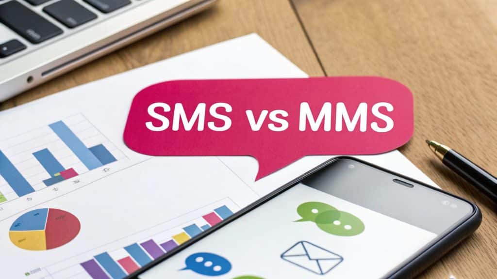 From a purely financial standpoint, the infrastructure needed to handle media files makes MMS inherently more expensive. That extra data transmission and carrier processing adds up, resulting in a higher price tag for every single message you send—a crucial detail when you’re planning campaigns at scale. You can get a full rundown of the ROI in our article on the costs of sending text messages and the results they bring.
