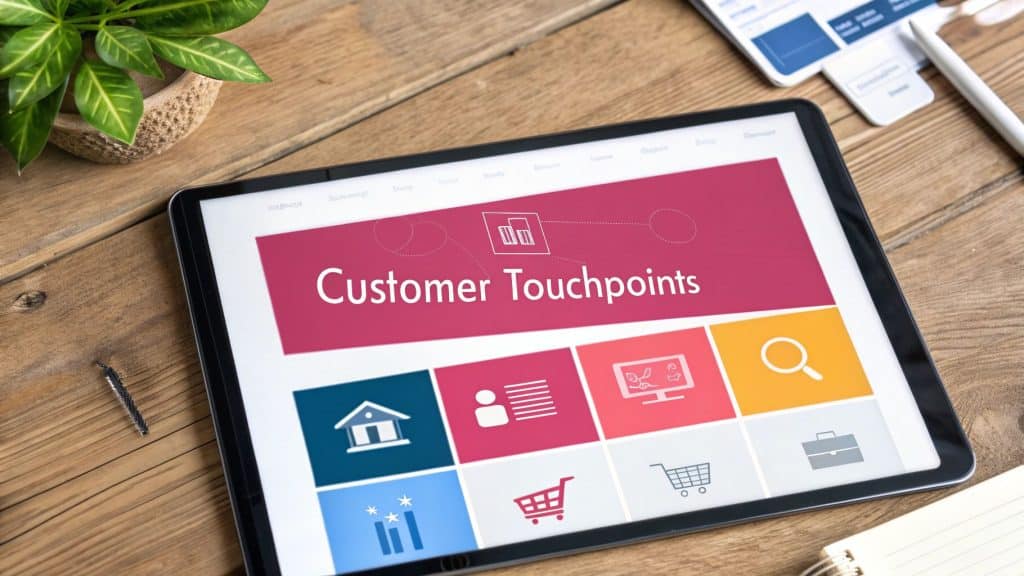 Customer touchpoints are every single interaction a person has with your brand, from the very first moment they hear about you to long after they’ve made a purchase. Think of them as the individual building blocks of the entire customer experience. Each one, whether it’s seeing a social media ad or unboxing a product, helps shape how they feel about your business. Getting these interactions right is everything.